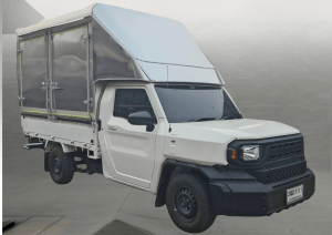 รถกระบะให้เช่า : รถกระบะตอนเดียว พื้นเรียบ Toyota Hilux Champ ช่วงยาว เกียร์อัตโนมัติ 6 สปีด ติดตั้งตู้อลูมิเนียมทึบ เปิดได้ 3 ด้าน